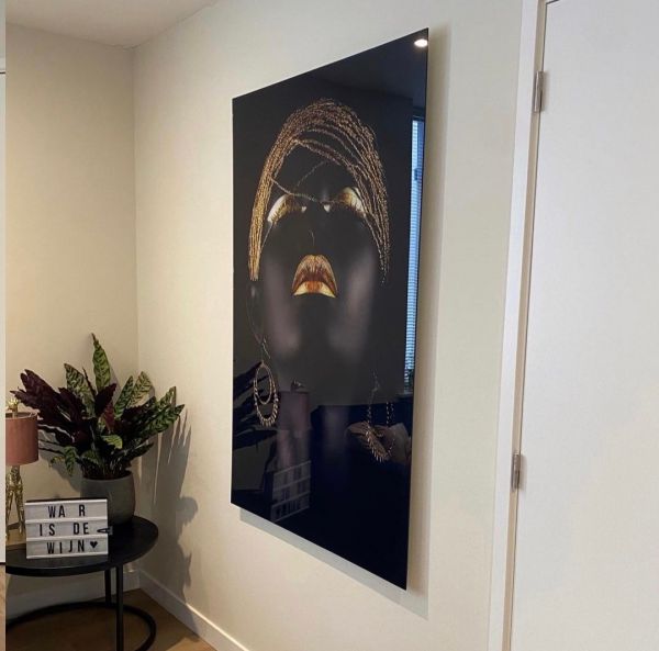 De foto is altijd voorzien van een luxe aluminium ophangframe. Het artwork hangt hierdoor ca. 2cm van de muur, dit creëert een luxueus zwevend effect. U krijgt ook een los muurprofiel meegeleverd, hier kan het artwork aan worden opgehangen.