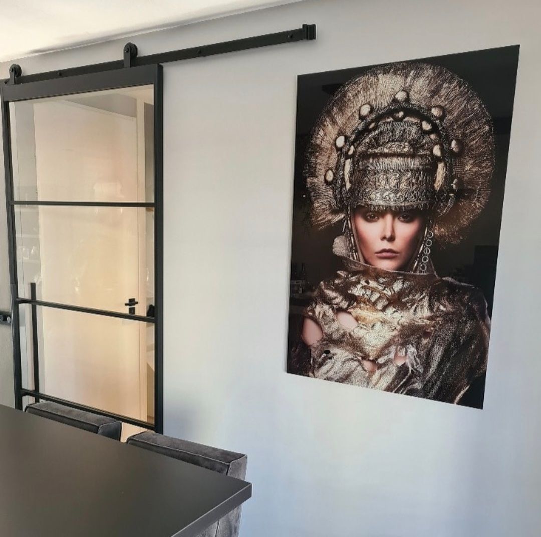 Elk schilderij wordt geleverd met een luxe aluminium ophangframe. Hierdoor hangt de foto ca. 2cm van de muur, waardoor u een luxueus zwevend effect creëert. Wilt u een extra luxe afwerking? Kies dan voor een mat zwarte baklijst.
